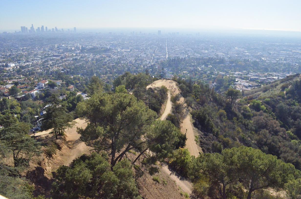 Downtown L.A. to the left, buildings along Wilshire Blvd running E to W