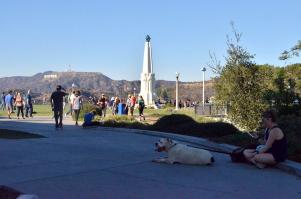 An overheated doggie resting away from the crowds