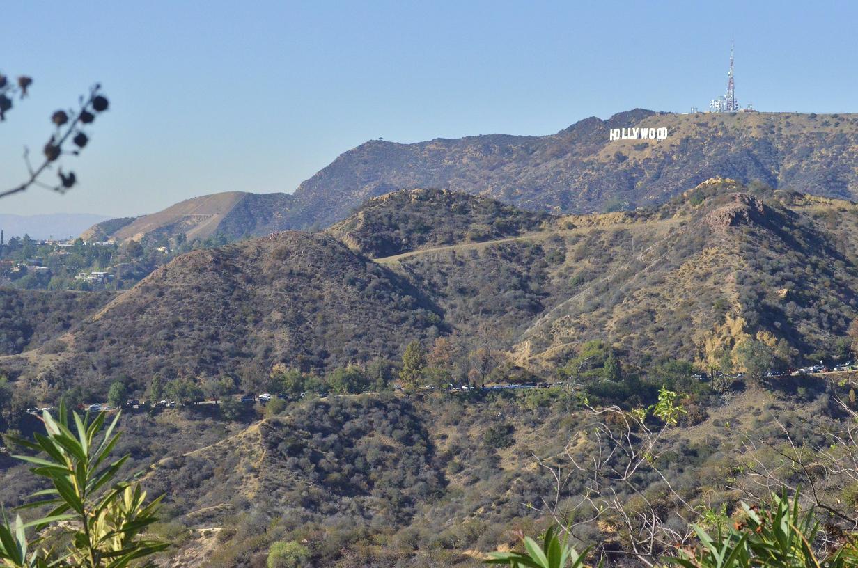The ever-famous Hollywood sign. Notice the line of cars inching along the road from Fern Dell