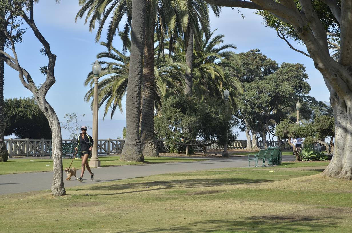 Jogging her dog