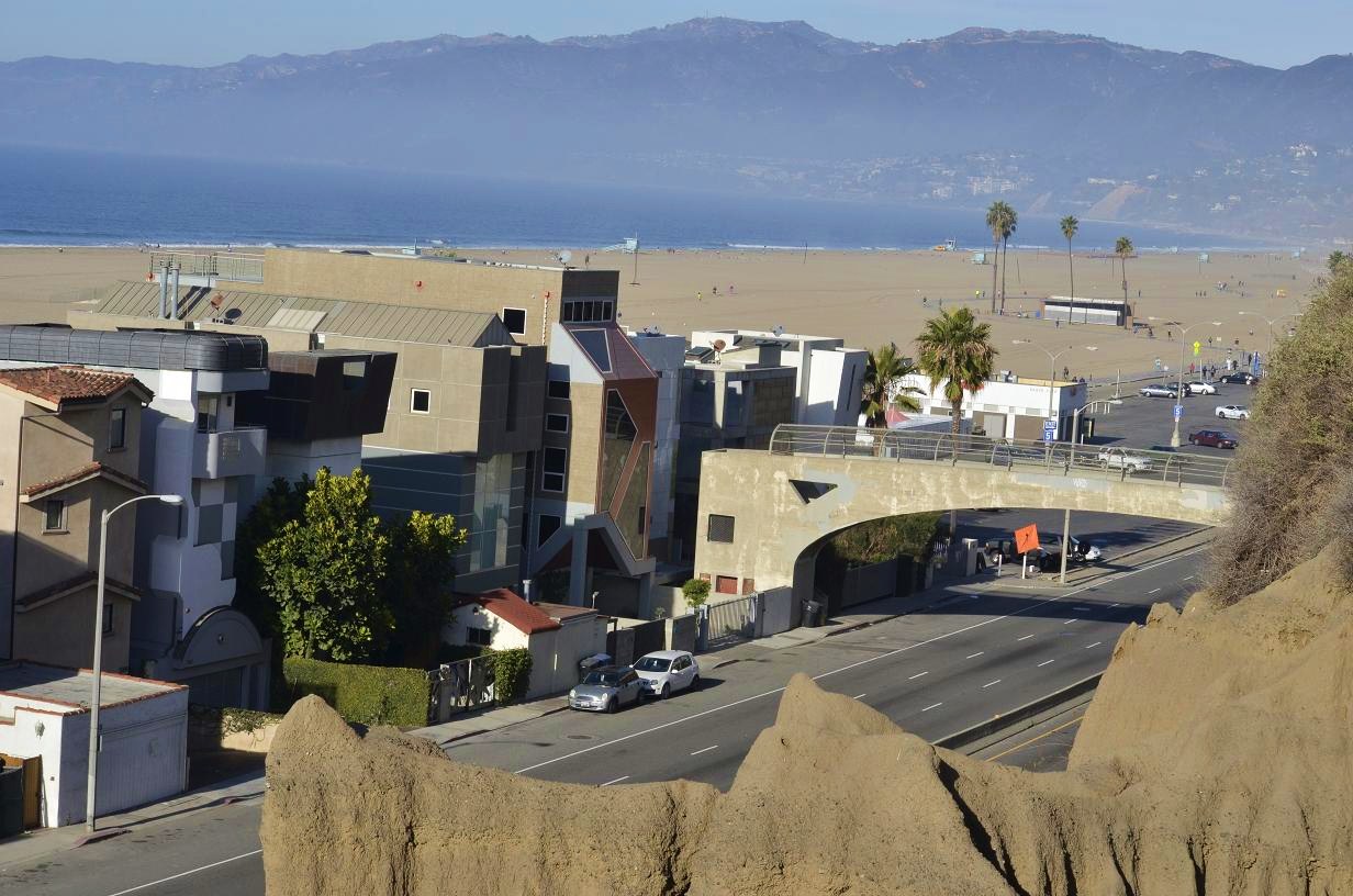 Sandstone cliffs and view up the beach