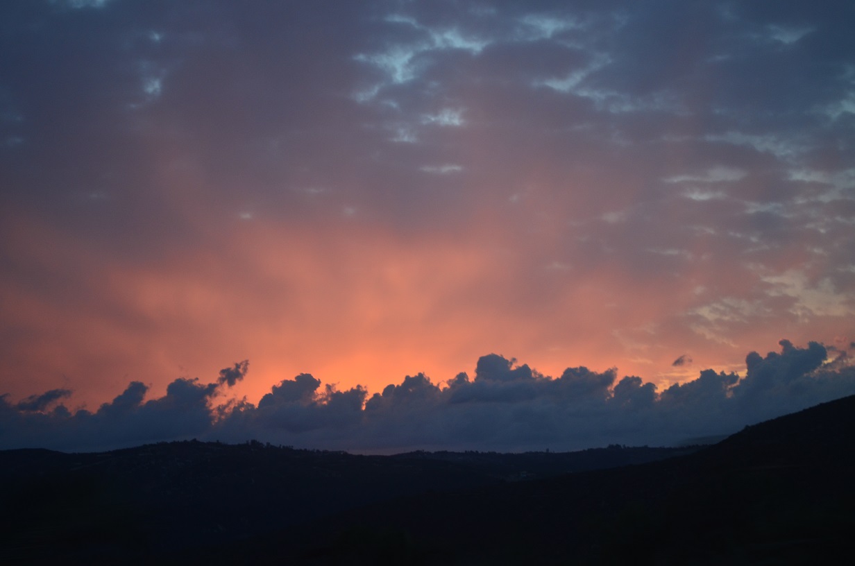 Sky on FireWhile driving home from Anza Borrego, the sky looked like it was on fire! Had to capture a pic! Amazing how gorgeous sunsets look with rain clouds in the sky. ~Kat (pic by Kat)