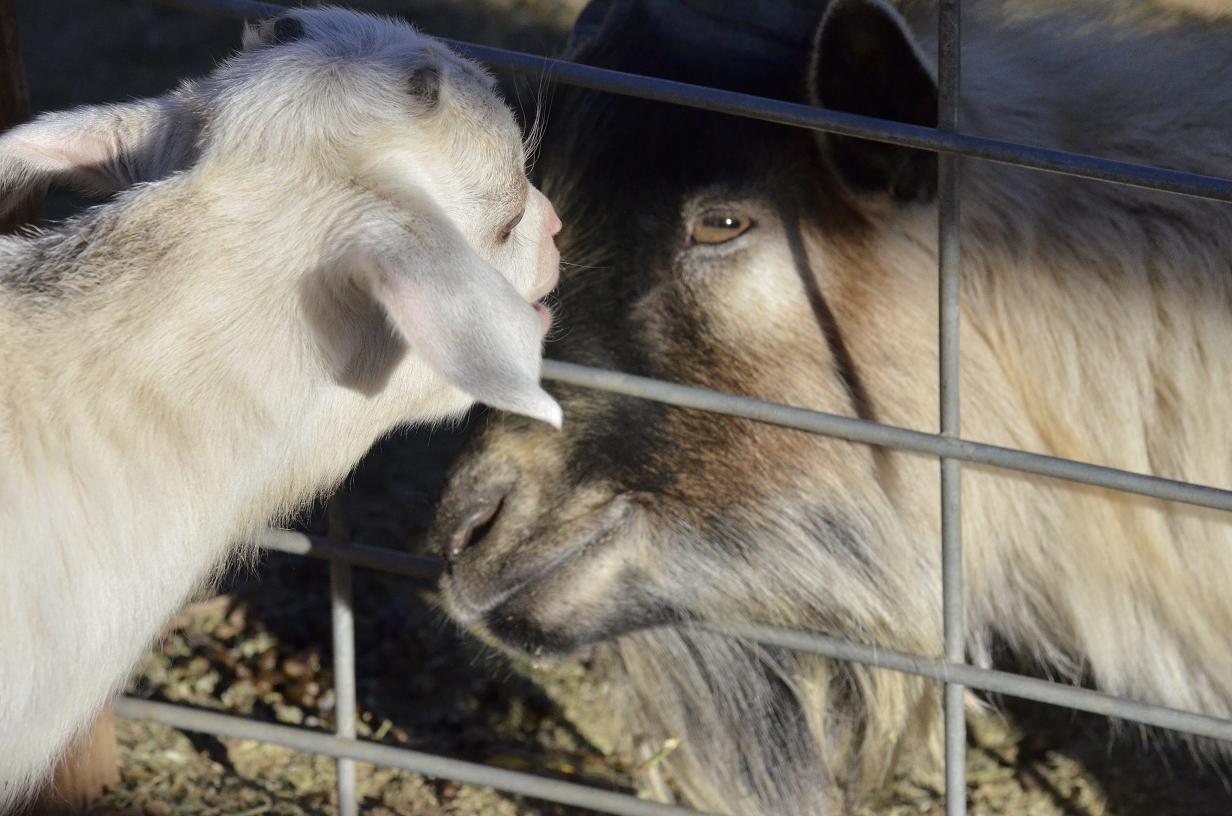 Happy Mother’s Day! This photo shows a wayward baby goat who’d somehow managed to get out of the fenced-in petting zoo at Riley’s Farm in Oak Glen, and was receiving advice from his mother on how to get back in. ~SueBee (photo by SueBee)Mama!
