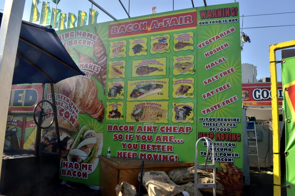 A dog and cat in clothing. Puns. Travel. Bacon. Not necessarily in that order.