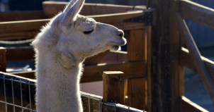 A llama in need of orthodonture work for an acute overbite was spotted sunning himself at Rancho Los Rios in Oak Glen. ~SueBee (photo by SueBee)