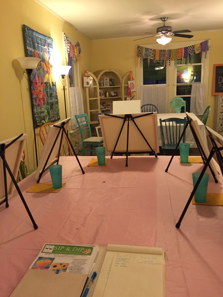 Easels set up, ready for the class