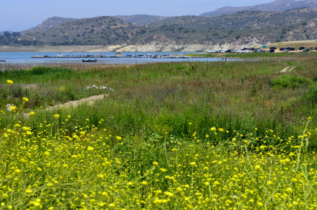 The former water line clearly visible in this photo of Irvine Lake, a privately owned fishing and boating lake near my home in the city of Orange, certainly shows results of Southern California’s drought. While I didn’t live in the area when the lake was at normal water levels, it’s sure sad to see how low the water is currently. The green area in the foreground had previously been under water. ~SueBeeVisual of Southern California's Drought
