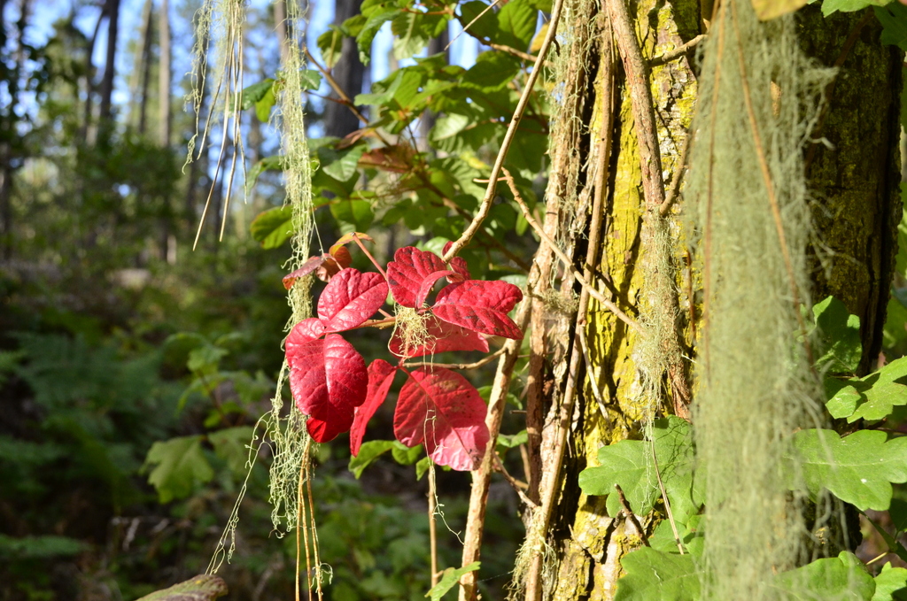 Providing a colorful entry to this Weekly Photo Challenge: Close Up, is a brilliant red poison oak (don’t touch!), joined by some sort of moss and lichen that covered many of the trees at Fiscalini Ranch Preserve in Cambria. I enjoyed walking the forest trail on my way to the ocean side bluffs during my recent vacation.~SueBee