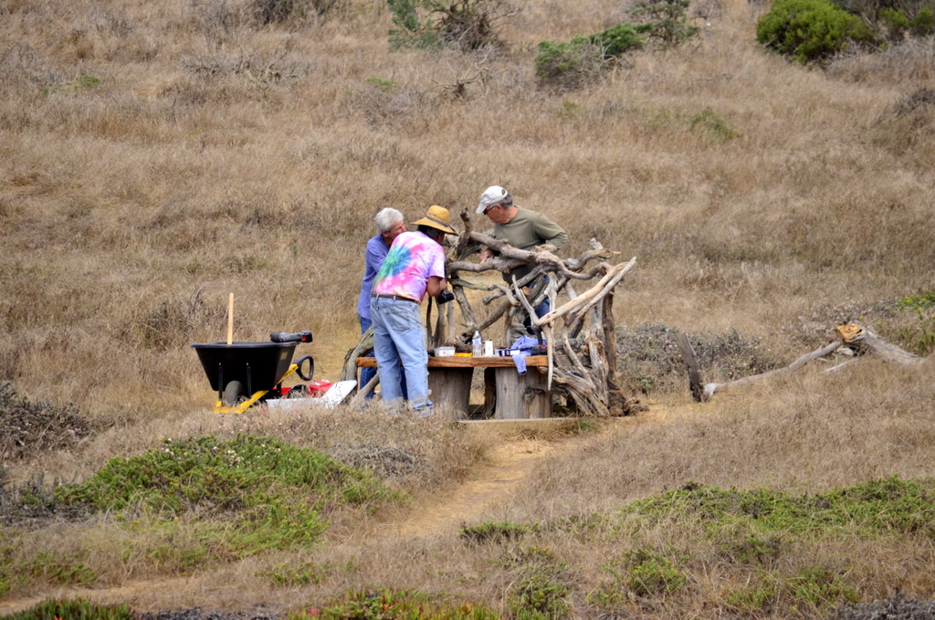 Volunteer artists building a new bench along Fiscalini trail