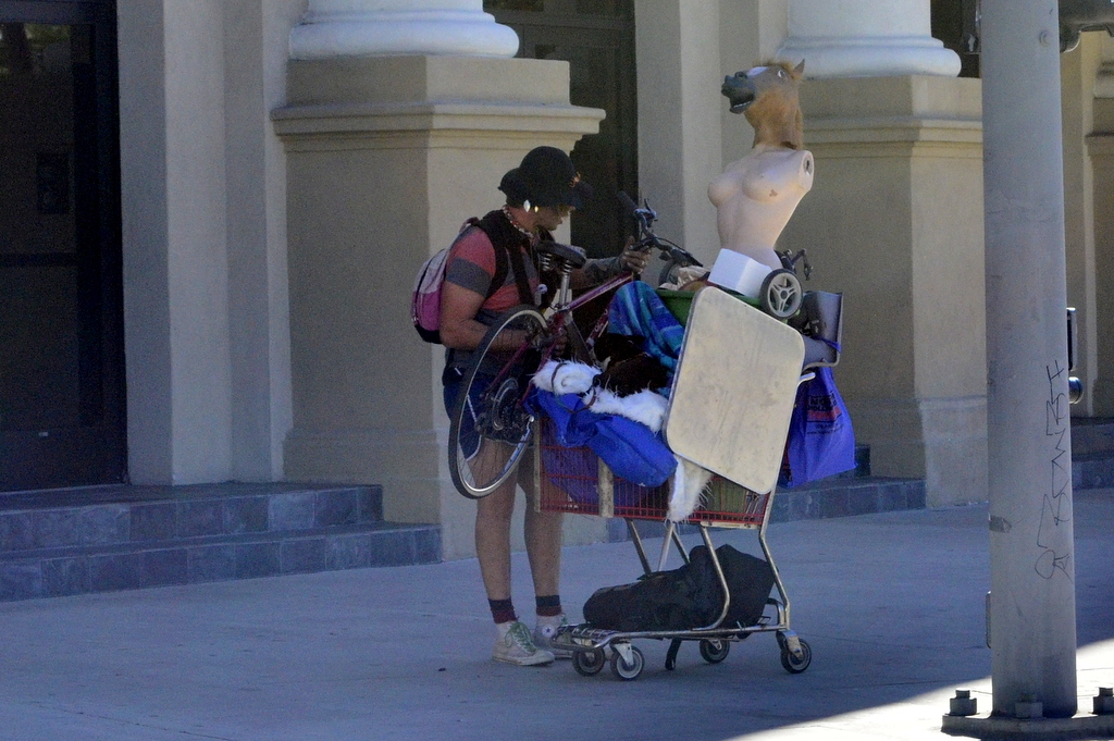 I first saw him rolling the cart across an intersection.