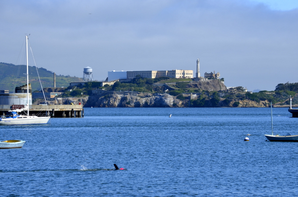 Swimmer with Alcatraz Island, the former prison, in background