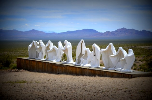 In the ghost town of Rhyolite, on the edge of Death Valley, stands an unusual open air art museum featuring the ghostly Last Supper, created by Polish Beligian artist Albert Szukalski. ~SueBee