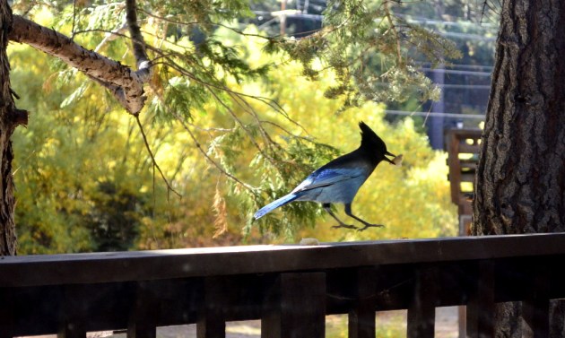 Today’s Foto Fix was taken at Green Valley Lake in the nearby San Bernardino mountains. I stayed at a cabin there with family this weekend and enjoyed being close to nature, and watching this delightful bluejay hopping along the porch railing. Getting his picture took an immense amount of perseverance and patience, that I must admit! ~SueBee