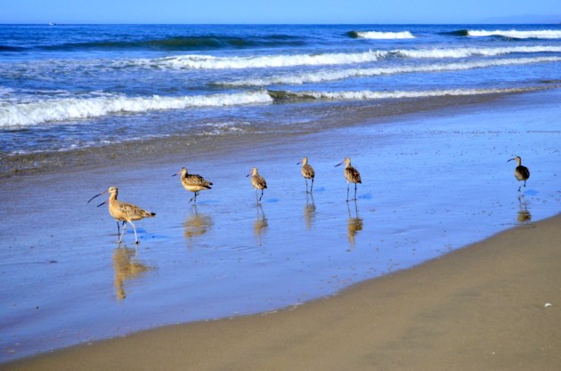 With 100+ degree temperatures here in Southern California again, I needed something cool to look at. This inviting picture was taken just a few weeks ago, north of Ventura, during my mini road trip. I wish I could join those birds right now, at this very moment, at 8:30pm on a Monday night! Even though my little home has “cooled” to a “comfortable” 90 degrees, the ocean water would feel lovely. ~SueBee