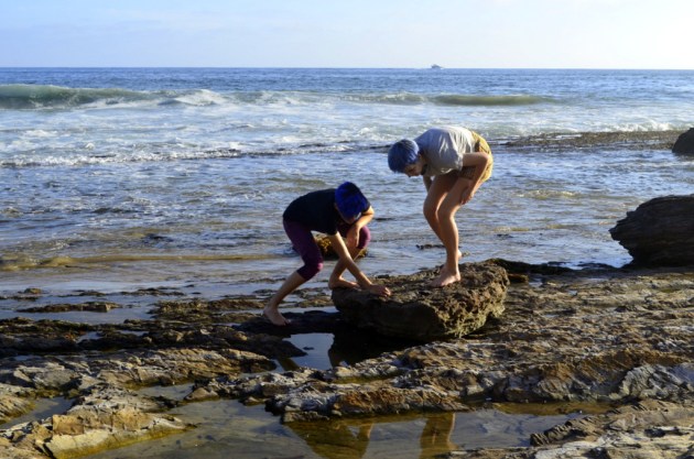 I took my camera to work today and headed for the beach as soon as I was off. I’ve missed my out ‘n about adventures and figured I’d kick myself back into gear. What a grand idea it was! I drove down the coast just a bit below Newport Beach and Corona Del Mar to a little spot, an historical spot actually, called Crystal Cove State Park. I’ll put up more pictures in a day or two but for now, this one, my favorite. The joy and sense of wonder as these two young people explored the tide pools… yeah, that’s what I needed to see! Summertime bliss! ~SueBee
