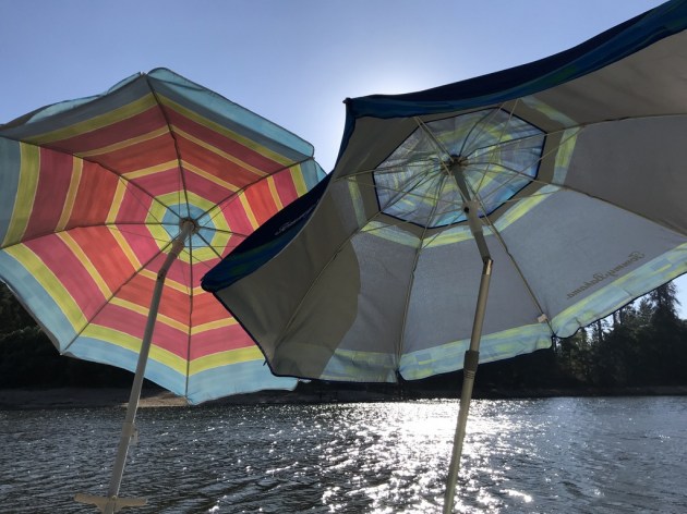 Our beach umbrellas at Lake Gregory yesterday afternoon, fending off the sun and a nice breeze. ~SueBee