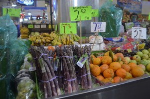 Inside Grand Central Market. I bought the purple asparagus, quite yummy.