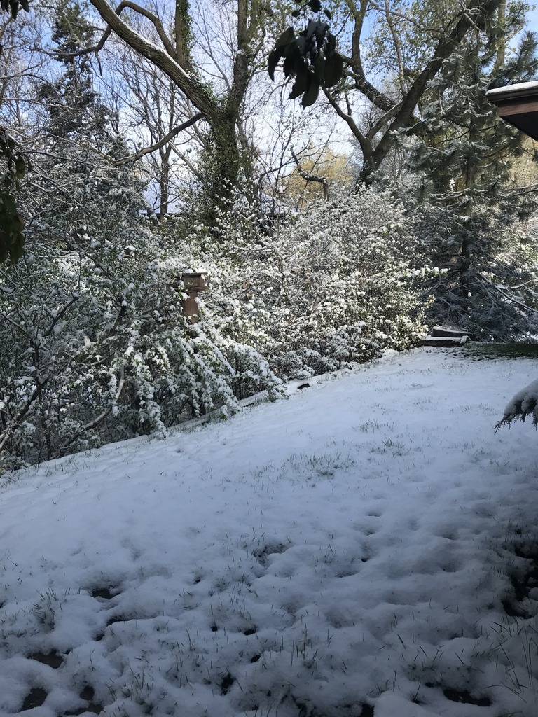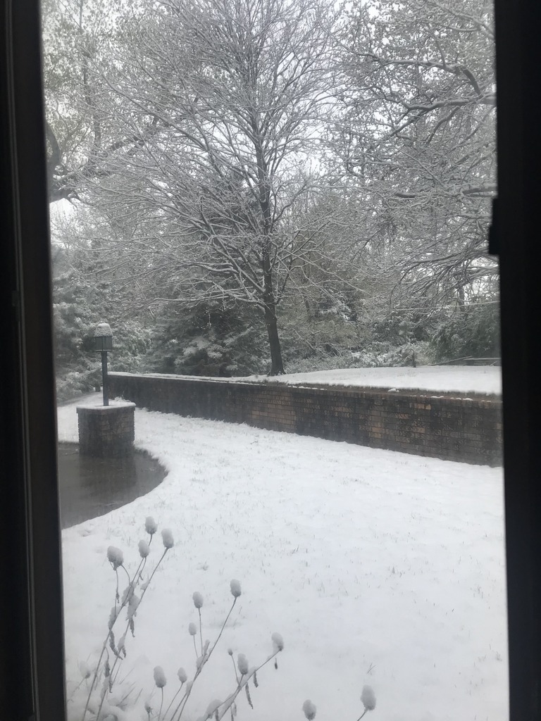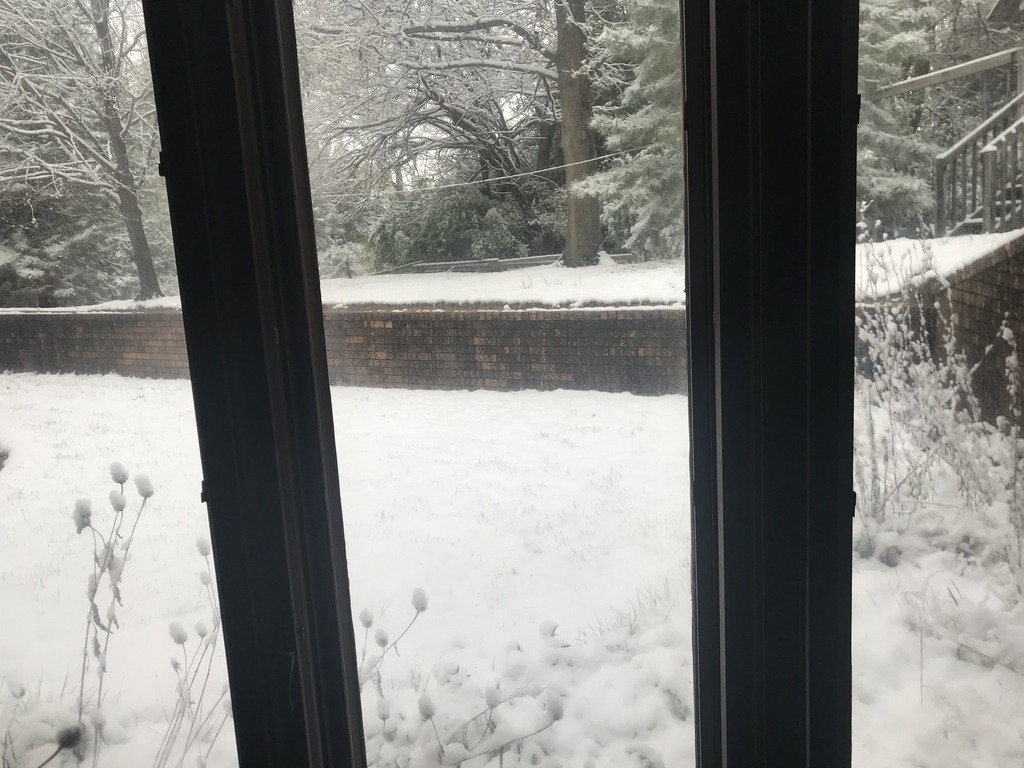 My recent two week visit to Kansas allowed me to see more changing of the seasons than we get here in Southern California. It was fun waking up to a snow-covered wonderland one day, and then watch it melt away by late afternoon. Bright green new leaves seemed to welcome the little break as they continued on their path to spring renewal. The pictures were all taken with my iPhone at my son and son-in-law’s new home. The pictures looking out the window were from my downstairs bedroom. I look forward to my next visit! ~SueBee