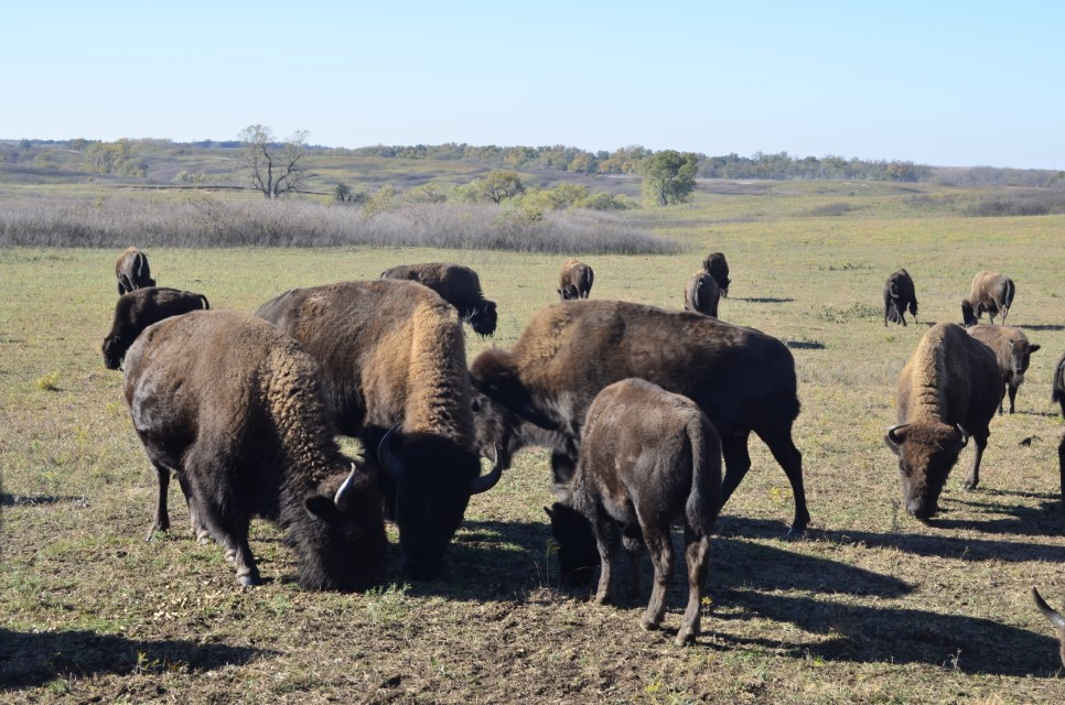 There’s a song I grew up listening to that popped in my head as I took my friends Aranka and George to the Maxwell Wildlife Refuge near the Swedish town of Lindsborg, Kansas a few weeks ago. The song is called Home on the Range, and is considered a traditional American folk song. The lyrics I remember are O give me a home where the buffalo roam, Where the deer and the antelope play, Where seldom is heard a discouraging word, And the skies are not cloudy all day. Seeing buffalo (bison?) on the wide open plains has long been something I wanted to see. The Maxwell Wildlife Refuge didn’t disappoint as you can see from the pictures. Our tour guide was very knowledgeable and friendly; we sat in an open trailer, pulled by a pickup truck. It was really cold, but clear and sunny. What an experience! ~SueBee