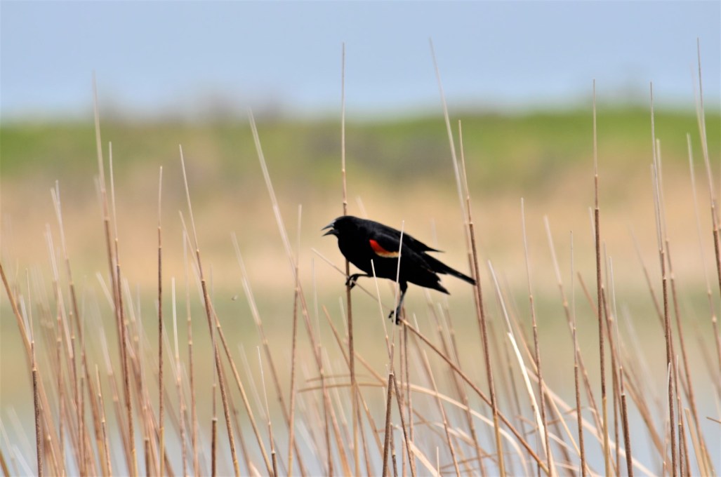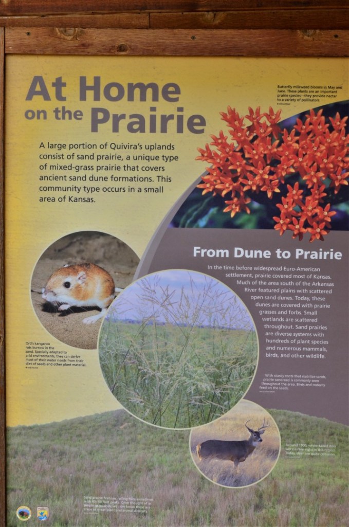 My first visit to Quivera National Wildlife Refuge in central Kansas taught me that, as suggested on the website, sunrise or sunset are the times to view the most birds and animals. I struggled to find birds to take pictures of, but I enjoyed myself regardless. I don’t see myself visiting during those prime hours as I go places alone and veer on the side of personal safety, so I have to be content with what I get. Unfortunately, the visitor center was closed so I didn’t get any further information, but driving the roads through the refuge was fun, although a bit lonely as I passed perhaps half a dozen other people the entire day! I stopped often to get a closer look at the few birds out and about, and was able to get these pictures. Next trip I’ll try to remember my tripod so I can make better use of my zoom lens. I cropped in on several of the pictures for ease of viewing. ~SueBee
