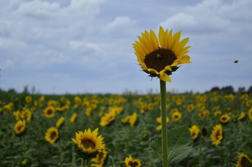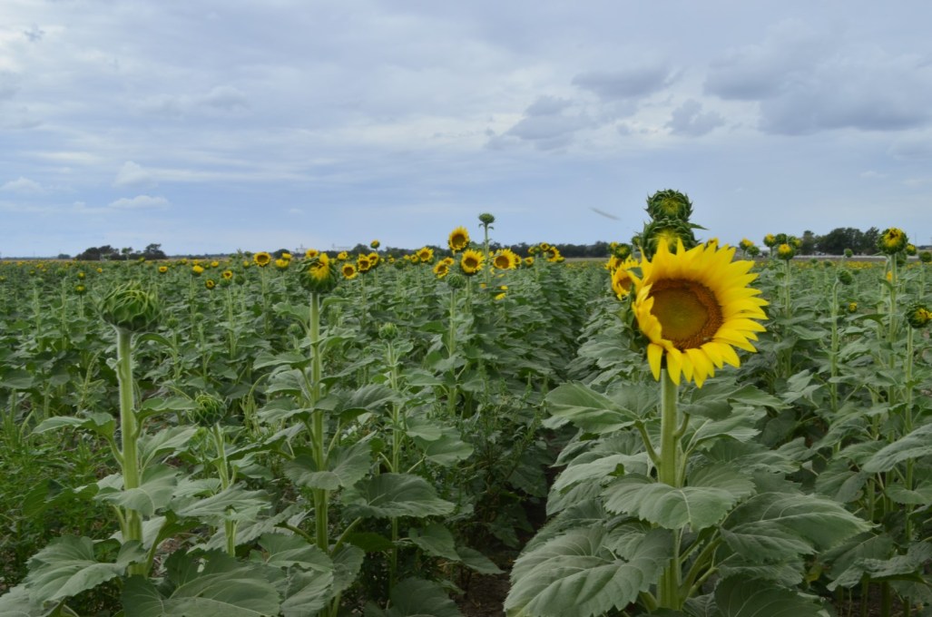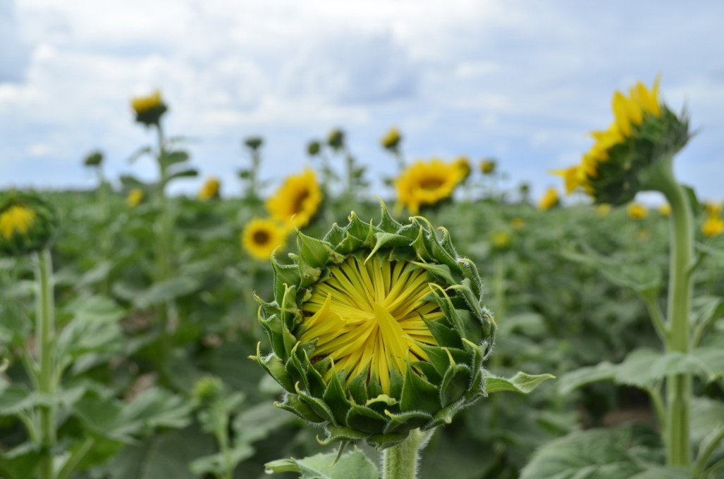 I’d been looking forward to seeing the fields of sunflowers Kansas is famous for. It’s the state flower after all. I lucked out in having the entire field to myself, although, had I been a week later, more flowers would have been in full bloom. A somewhat cooler, overcast day without crowds suited me just fine. ~SueBee