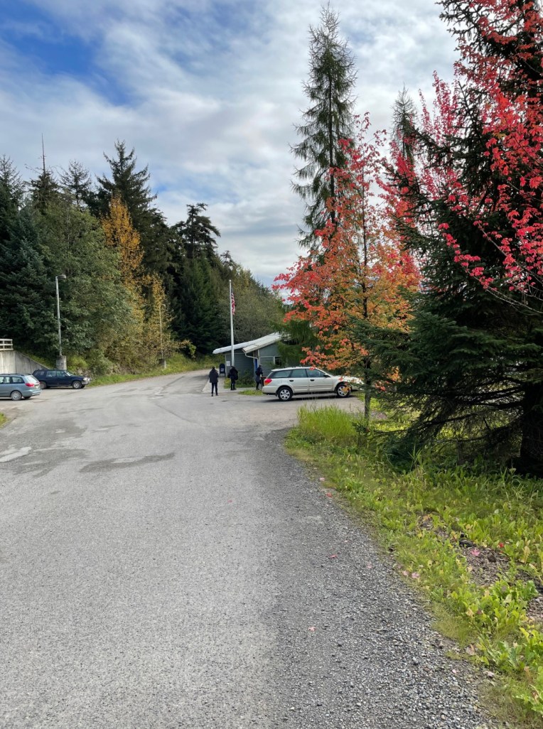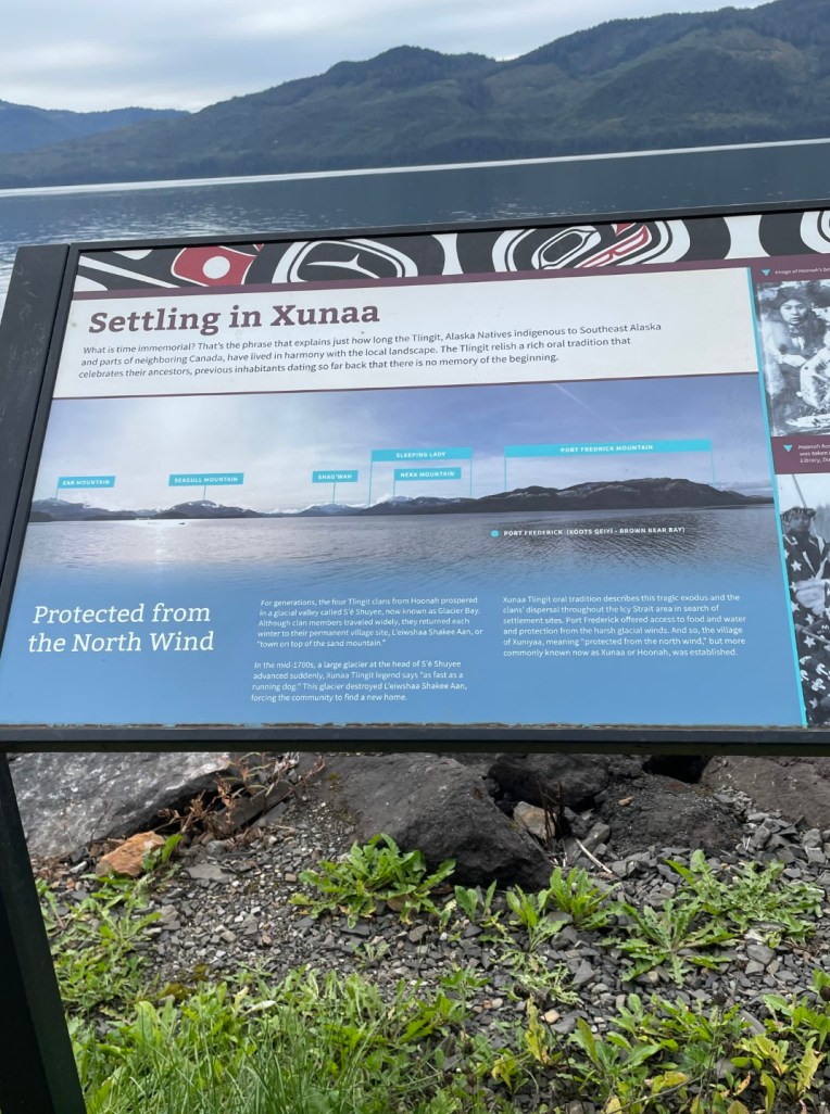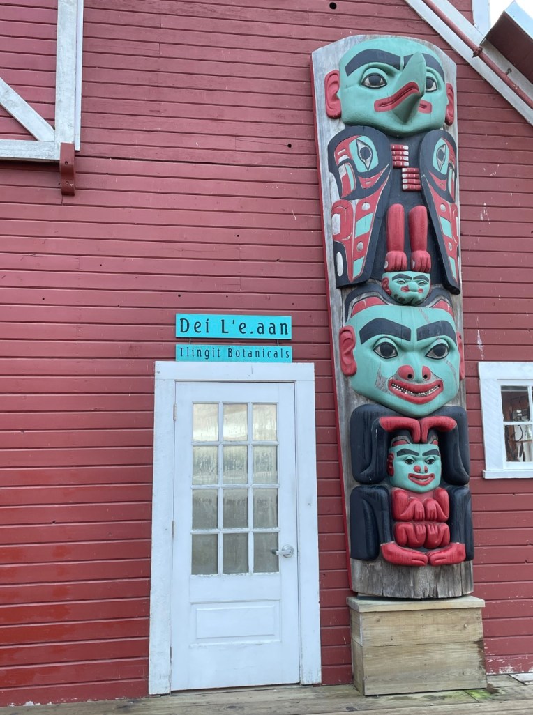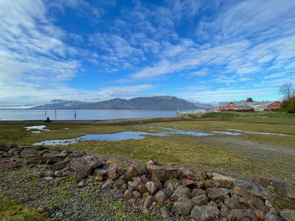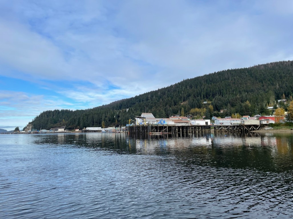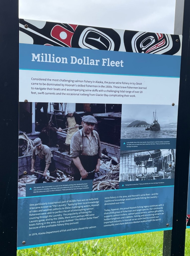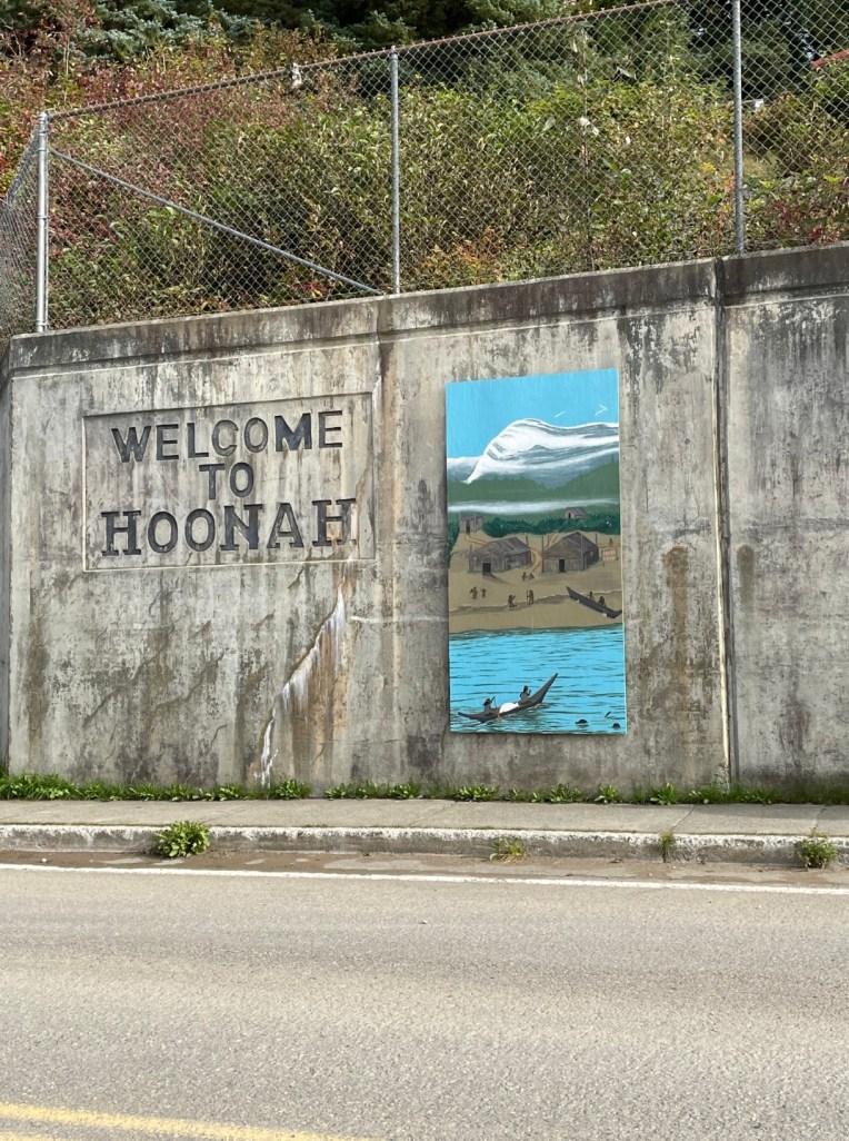 I arrived in Hoonah. My first goal was finding the post office so I could mail the post cards we’d all written, including the one I wrote to myself as a souvenir. I wanted them to have the Hoonah postal mark. I went in a local fishing and tackle shop and asked the clerk. She said “oh, it’s just up the way”. Not really knowing how far I’d end up walking, I started out…. after quite a long distance, I asked a couple men working on a car and they pointed just a half block along. There it was at last! On the way back, I stopped at The Fisherman’s Daughter for a cup of the best clam chowder I think I’ve ever eaten.