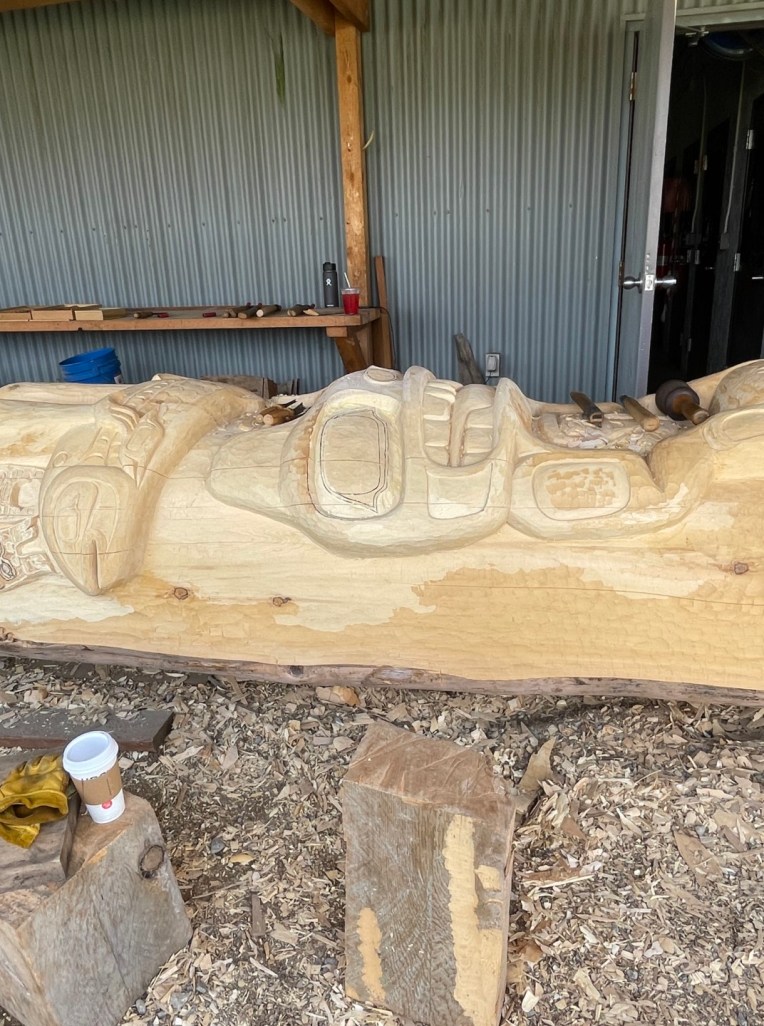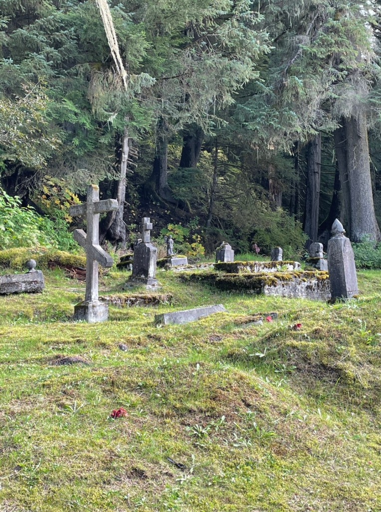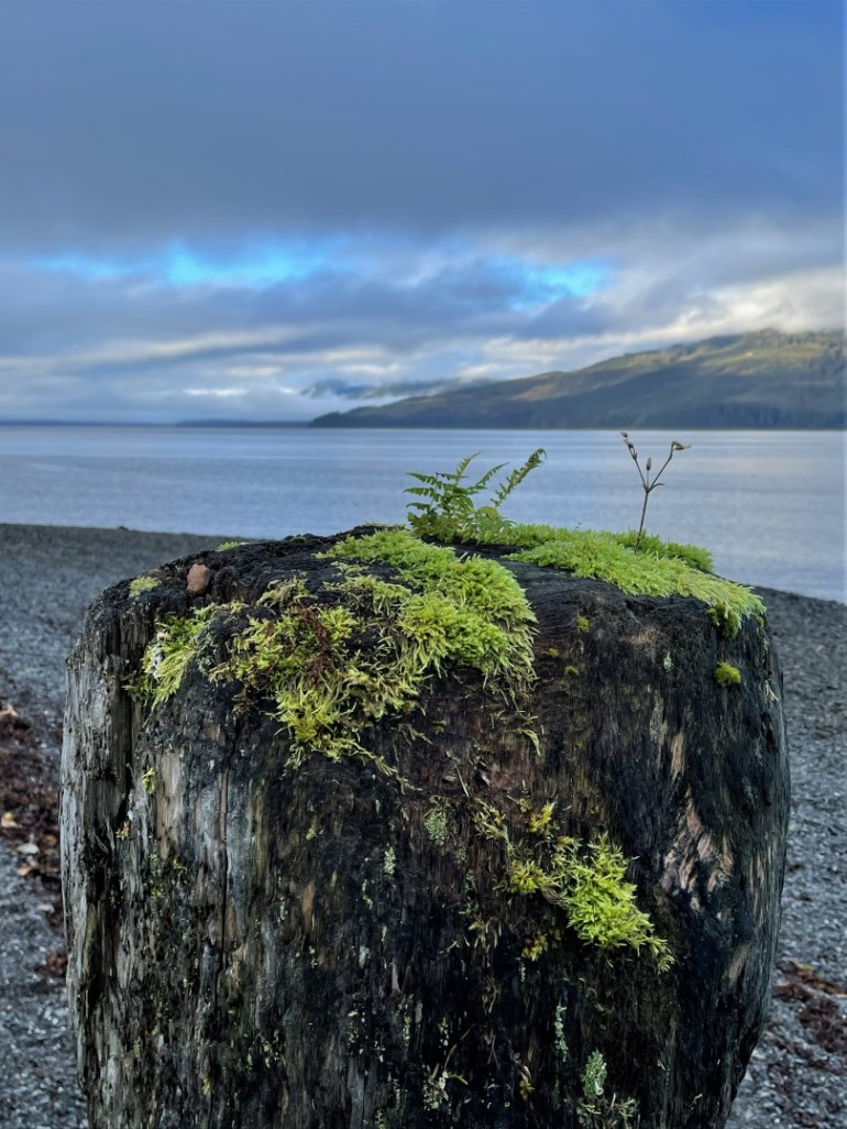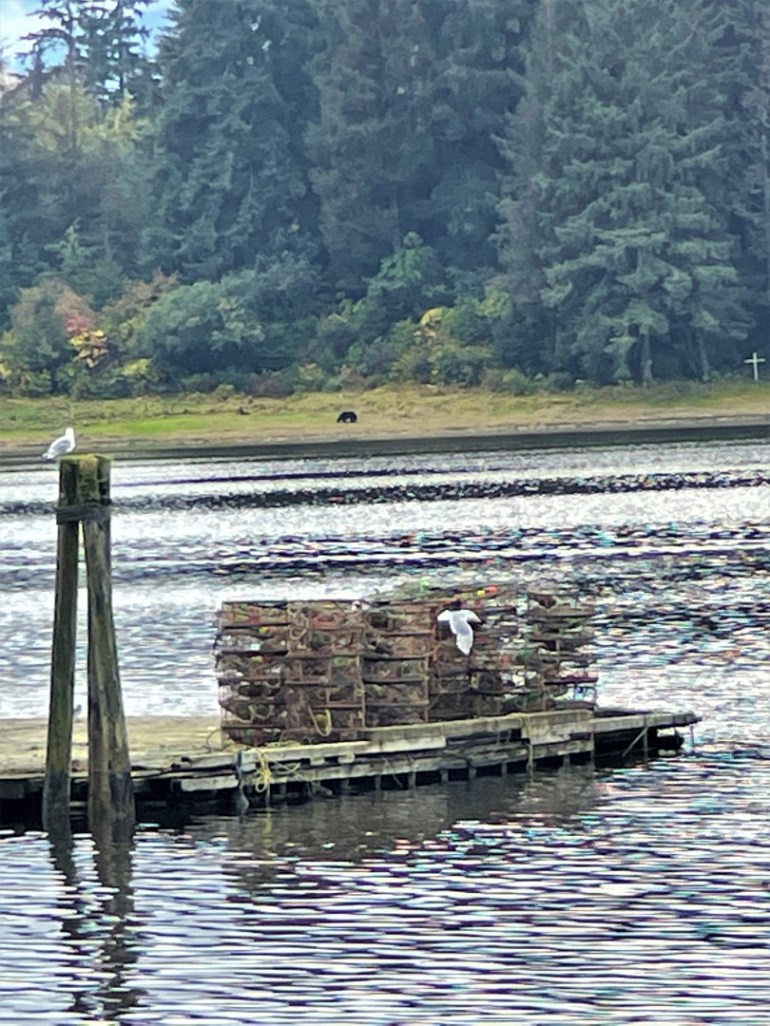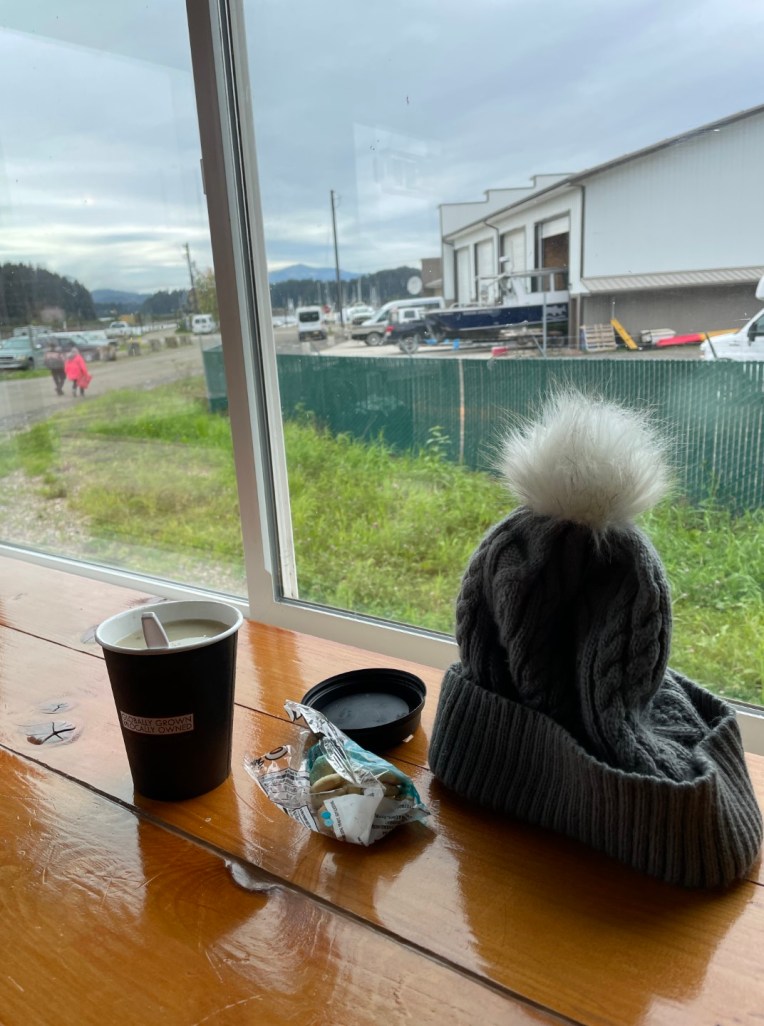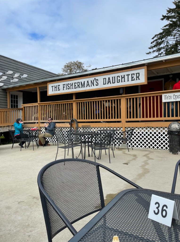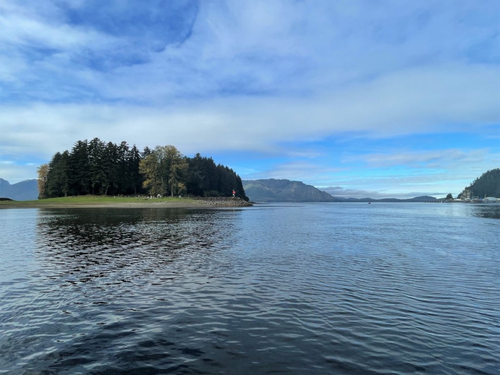 I arrived in Hoonah. My first goal was finding the post office so I could mail the post cards we’d all written, including the one I wrote to myself as a souvenir. I wanted them to have the Hoonah postal mark. I went in a local fishing and tackle shop and asked the clerk. She said “oh, it’s just up the way”. Not really knowing how far I’d end up walking, I started out…. after quite a long distance, I asked a couple men working on a car and they pointed just a half block along. There it was at last! On the way back, I stopped at The Fisherman’s Daughter for a cup of the best clam chowder I think I’ve ever eaten.
