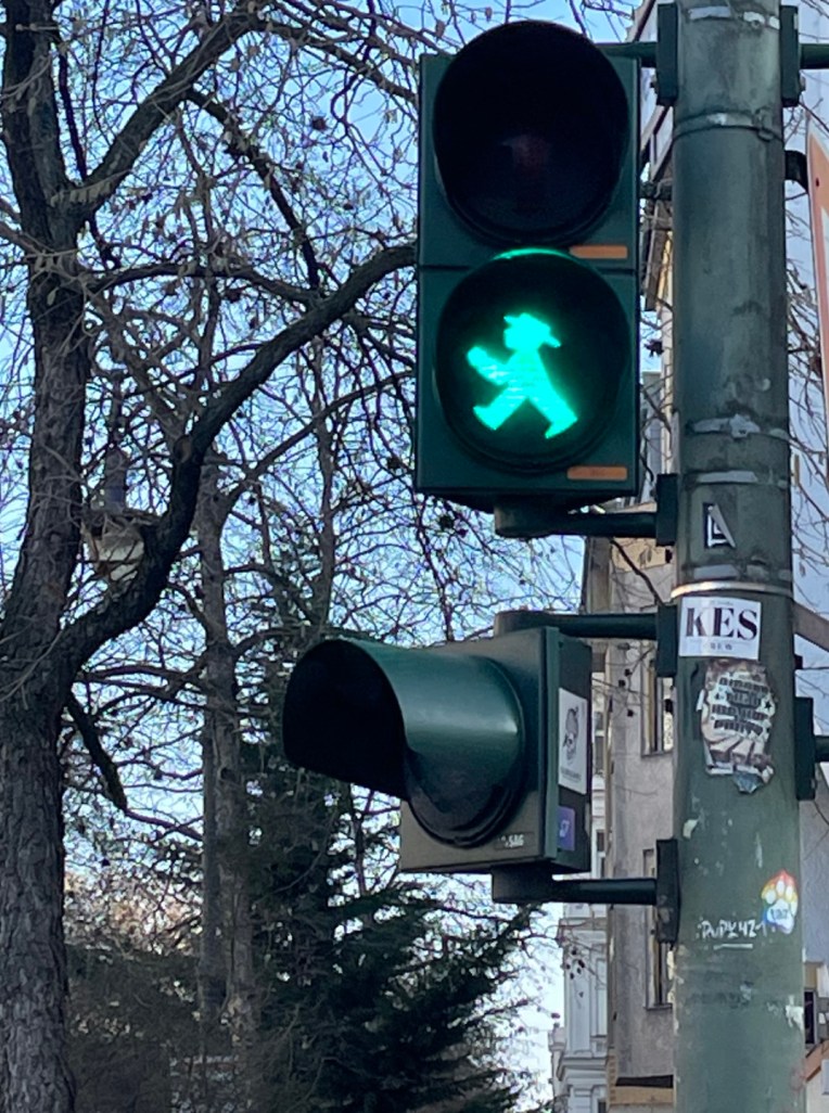 I recently returned from spending three glorious weeks visiting my daughter, Angelika, and her family in Berlin, Germany where they’ve been living since last year. We had such fun, saw so many places, ate such delicious food, and generally had a very memorable time. While I sort through all the hundreds of photos I took with my iPhone, I thought I’d start with these. I was clearly fascinated by the Ampelmann (translated to Signal Man), and was disappointed when a signal wasn’t using him to direct me when to cross. ~SueBee