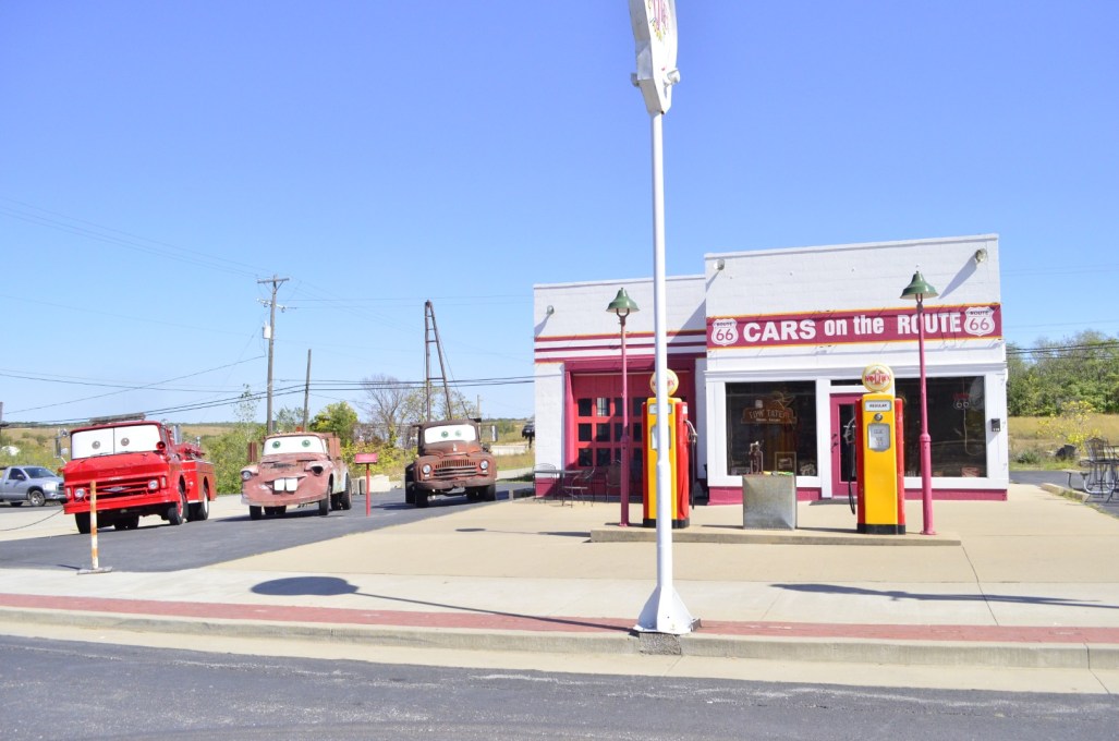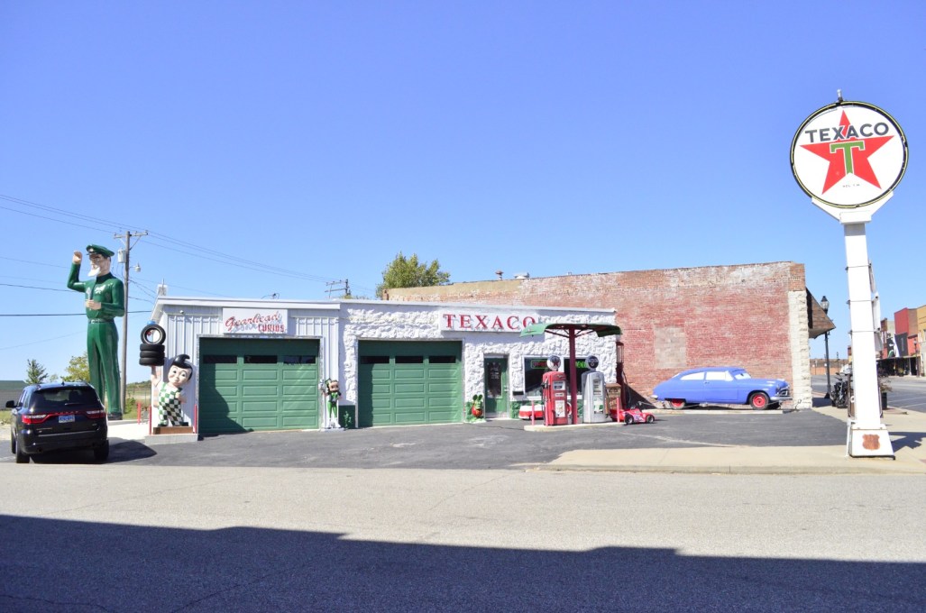 From Branson we drove to Afton, Oklahoma, to stay at a timeshare Aranka had reserved for us. I was so excited to see all the Route 66 places in that area as I’d driven on it in California many times, and also a few times on the Arizona section. For those not familiar, per Wikipedia, Route 66 is ” is one of the original highways in the United States Numbered Highway System.” I’ve long been fascinated by it as Route 66 comes to an end in Santa Monica, California, after 2,448 miles from Chicago, Illinois. Route 66’s been mostly replaced by freeways and highways, but we made a point of sticking to it whenever possible as we were in no hurry. The local folks make a point of having vintage displays, little museums, and sights along the way. Such fun!
