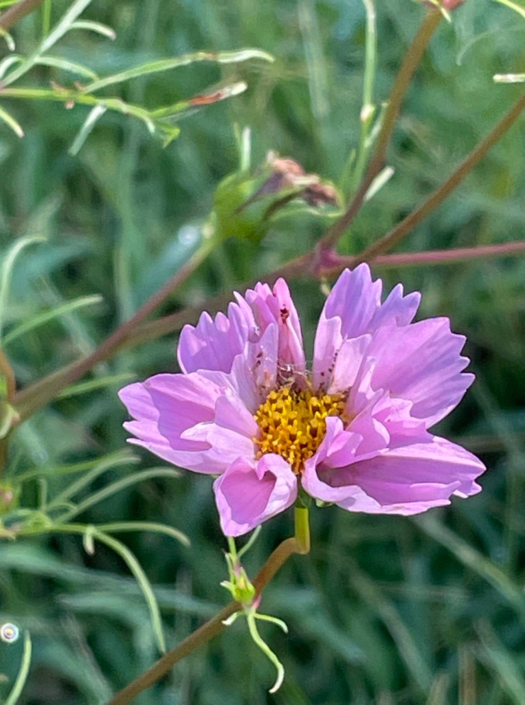 After my first year living here I decided the backyard lawn guy had to go. I wanted to see what would grow if not sheered off at ground level. The previous owners had nothing in the yard other than grass (not fancy grass, just the ordinary patchy variety), 4 trees on the sand hill, 1 sycamore tree on the bedroom side yard, and a row of cedars at the back fence line. I’ve planted a few new trees myself, and lots of bushes and plants, as well as an annual veg / flower bed. This year I focused on butterfly and bee friendly flowers.