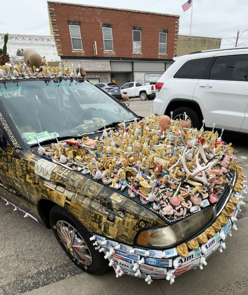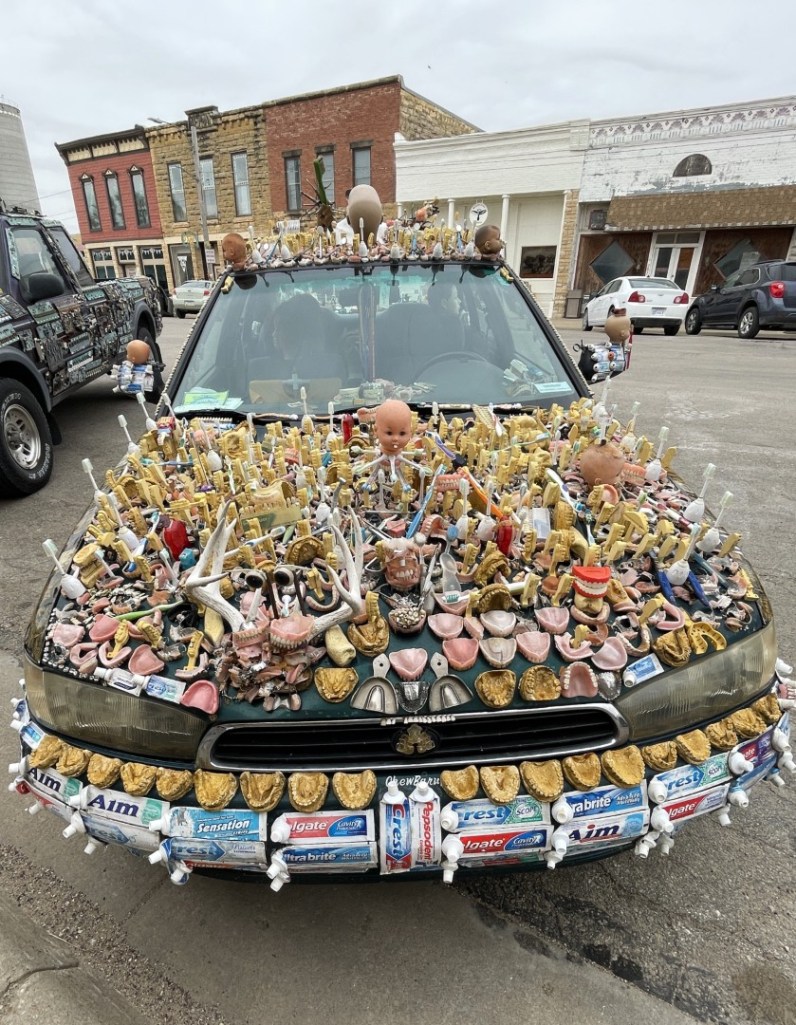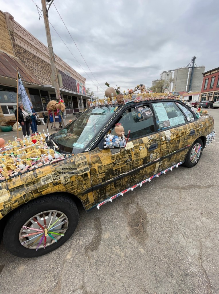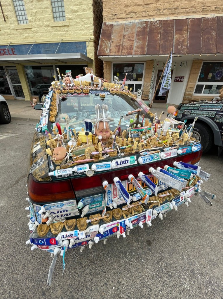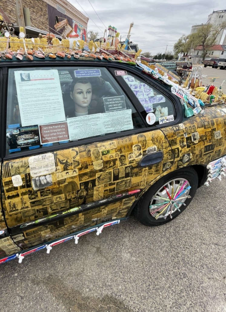 I visited the town of Lucas, Kansas, today. Per the internet, “Lucas is a small city in Russell County, Kansas, known as the “Grassroots Art Capital of Kansas,” with a population of 332 as of the 2020 census” and is about an hour and a half drive northwest from my home. An art display was set for today, April 1st, April Fool’s Day, and I thought it might be interesting. It was, and I have a line-up of posts that I’ll get uploaded this month.
