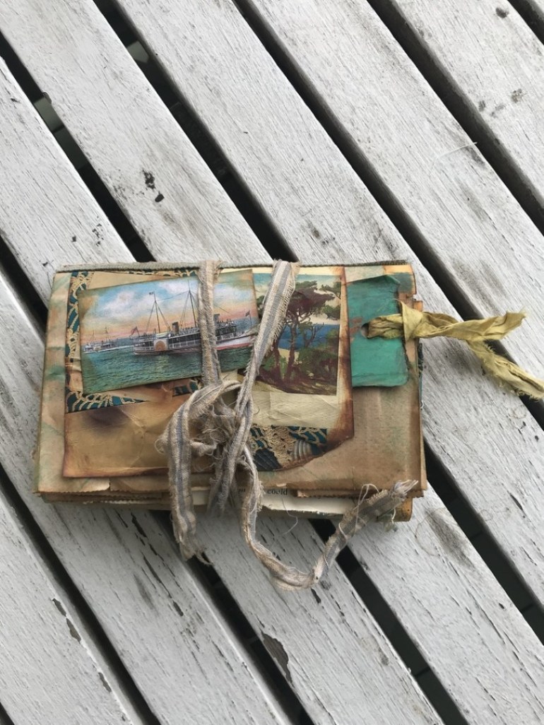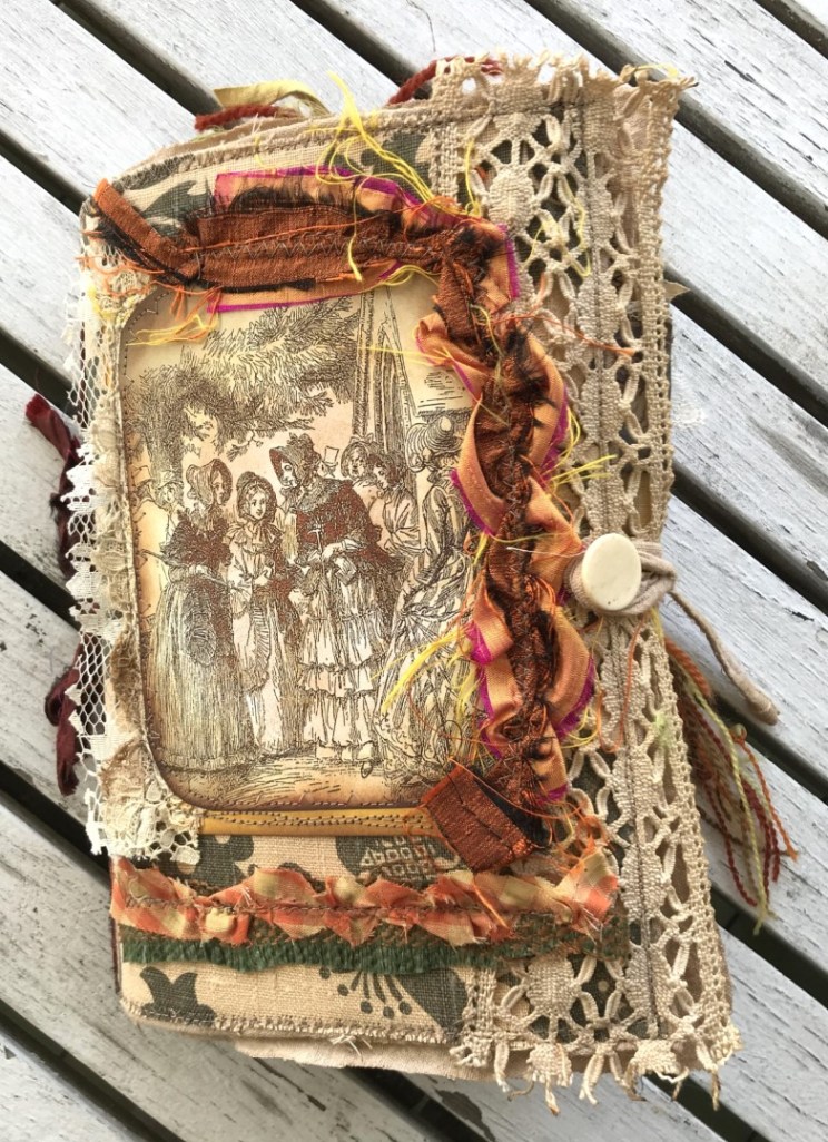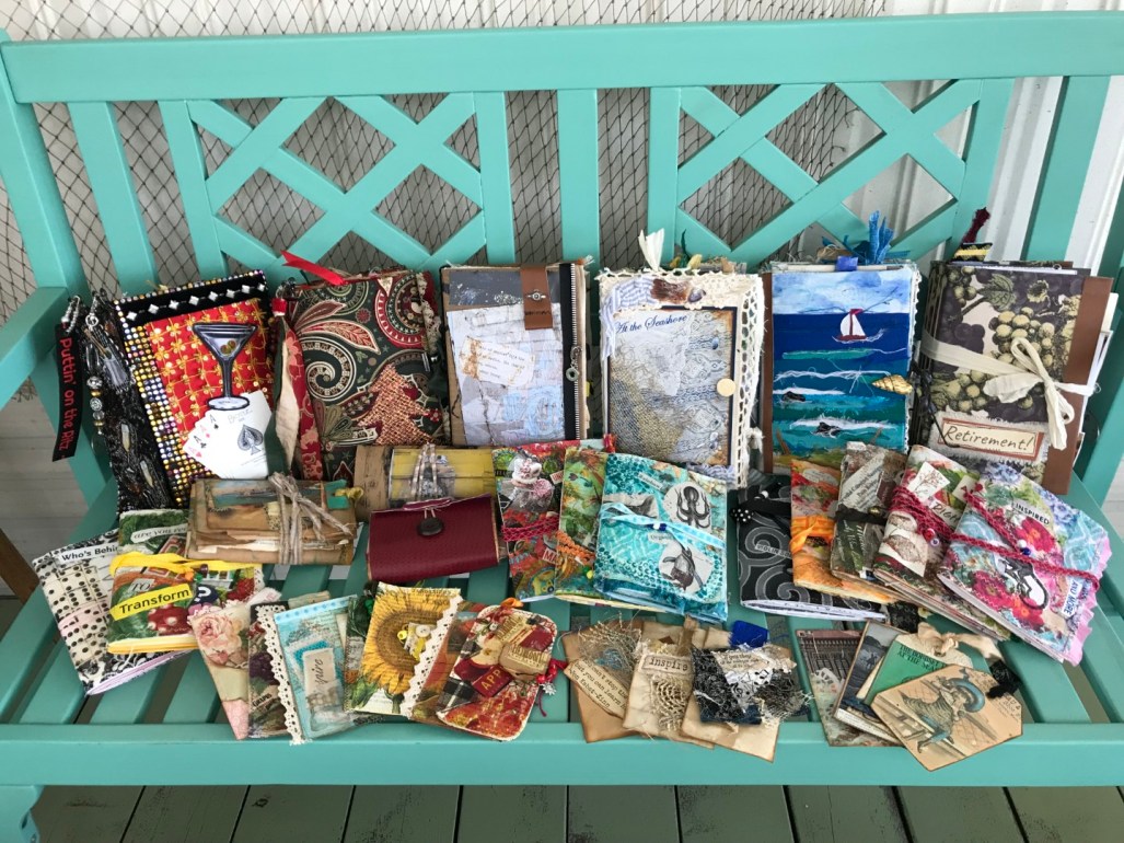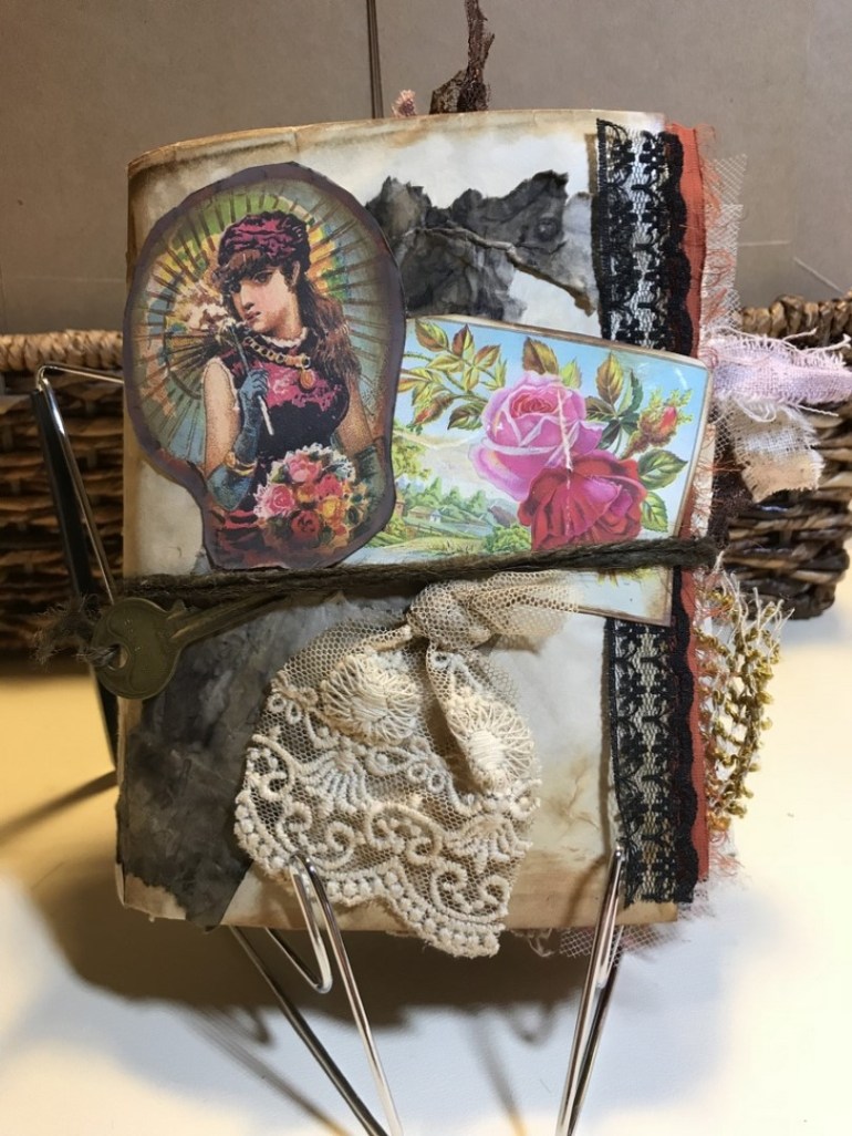 I started making journals in November, 2018, and quickly became hooked on the craft. They’re generally referred to as Junk Journals because they tend to use lots of upcycled materials. They’re also known to some people as Treasure Books. I’ve made use of my long-held loves of fabric and sewing, as well as gained an outlet for my many thousands of photographs, and sharpened my brain by learning paper manipulation and digital design techniques… Retirement has been the icing on the crafting cake, giving me more hours in the day. I built an Etsy shop in mid-2019 and was thrilled with my first order, and subsequent ones. I also created a YouTube page which allows viewers to see all the details and uniqueness each journal has to offer. ~SueBee