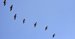 Today’s Foto Fix was taken near Carlsbad in Southern California, south of where I live in Orange. I was pleased to capture all seven birds as they sailed by in formation. ~SueBee